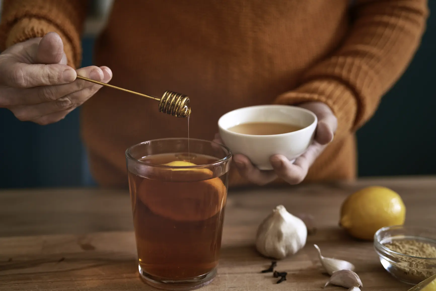 Topli čaj s medom i limunom klasičan je lijek za grlobolju i suhi kašalj. Med ima i blago antibakterijsko i protuupalno djelovanje, a limun donosi vitamin C i osvježava sluznicu.