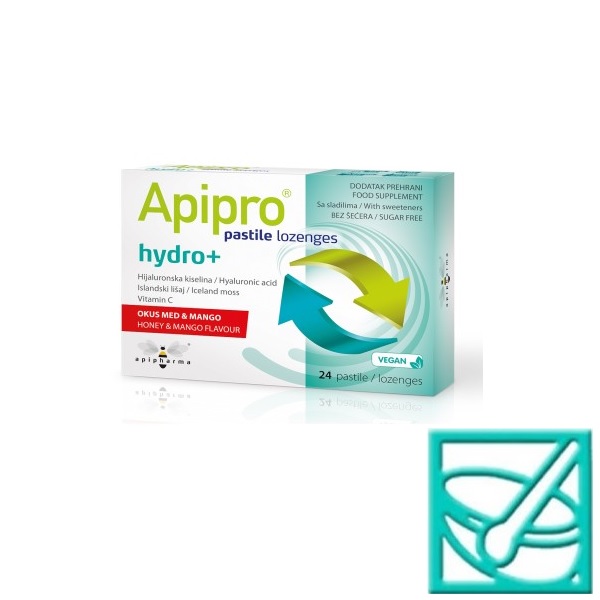 Apipro® Hydro+ pastile s formulom koja kombinira islandski lišaj, hijaluronsku kiselinu i vitamin C, pružaju izvanrednu njegu i hidraciju grla, ali i potporu imunitetu. Bez šećera.