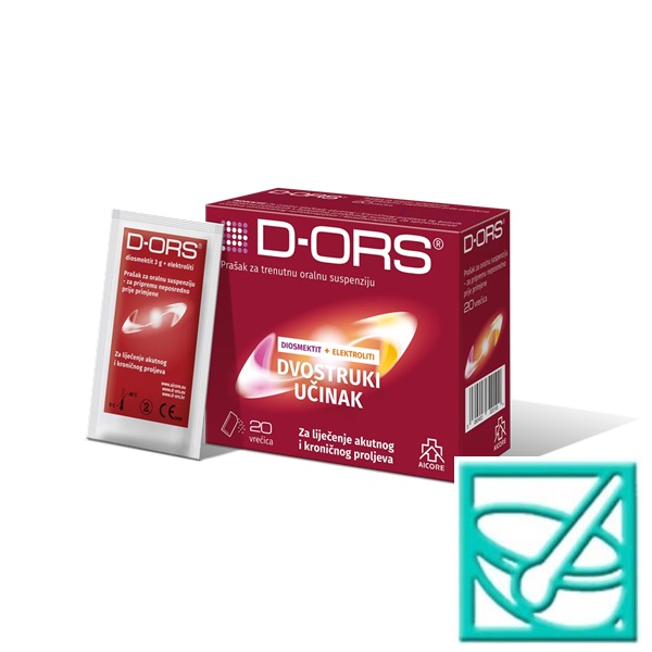 ži diosmektit i elektrolite. Ovo je jedinstven proizvod na hrvatskom tržištu, bez usporedive alternative, koji sadrži dvije važne komponente za liječenje proljeva u jednoj vrećici.Sastav elektrolita u D-ORS-u uravnotežen je u skladu s međunarodnim preporukama Europskog društva za pedijatriju, gastroenterologiju, hepatologiju i nutricionizam.