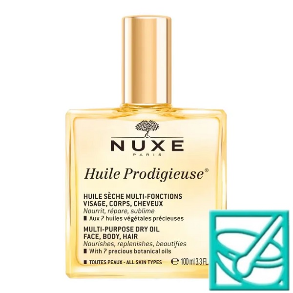 Nuxe Huile Prodigieuse® čudesno suho ulje višenamjensko je ulje za njegu lica, tijela i kose. Formula sadrži 7 dragocjenih biljnih ulja: ulje slatkog badema, kamelije, borača, lješnjaka, makadamije i argana. Intenzivno njeguje i hrani kožu te joj pruža antioksidativnu njegu. Kožu obavija senzualnim mirisom koji sadrži cvjetne note i tople note vanilije i kokosovog mlijeka. Sadrži najmanje 98.1 % sastojaka prirodnog porijekla te ne sadrži konzervanse, silikone i mineralno ulje.