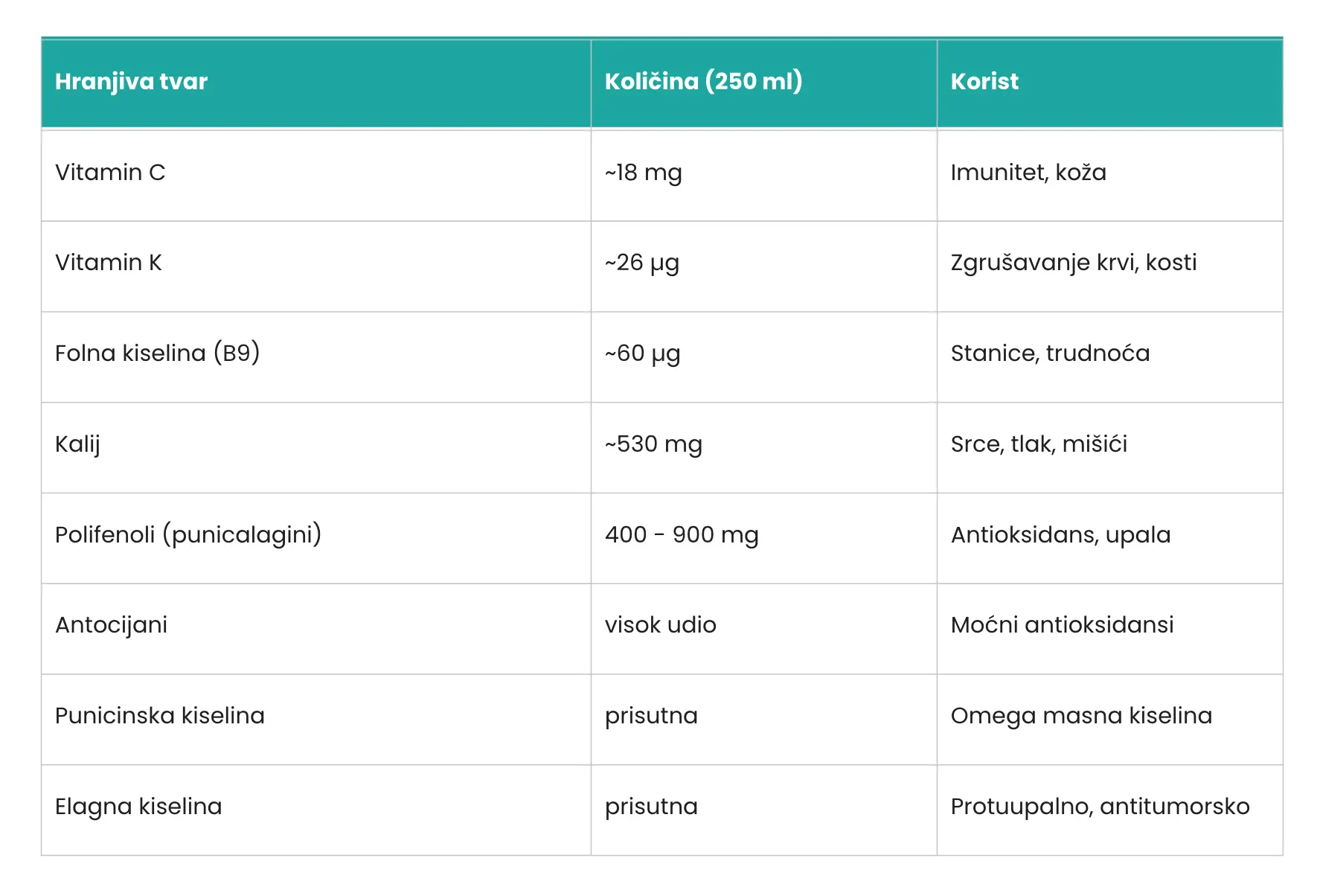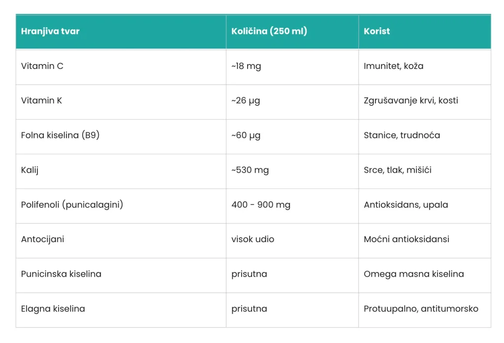 Zahvaljujući visokom udjelu vitamina C, antocijana i elagne kiseline, sok od nara podržava prirodnu obranu organizma.
